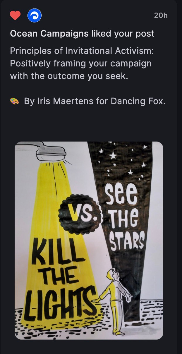 There’s a lesson there for all of us working or thirsting for social change, for an energy transition, for a more sustainable, just, equitable world for our fellow humans and animal friends. And that lesson is the importance of invitation, of positive vision, and something about being the kind of companion that your audience wants to ride out with. At Dancing Fox, we call it Invitational Activism.